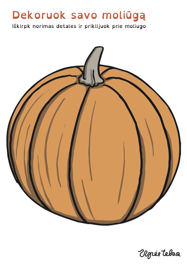 Iškirpk veido detales, suklijuok jas ant moliūgo ir sukurk žaismingą rudenišką personažą!